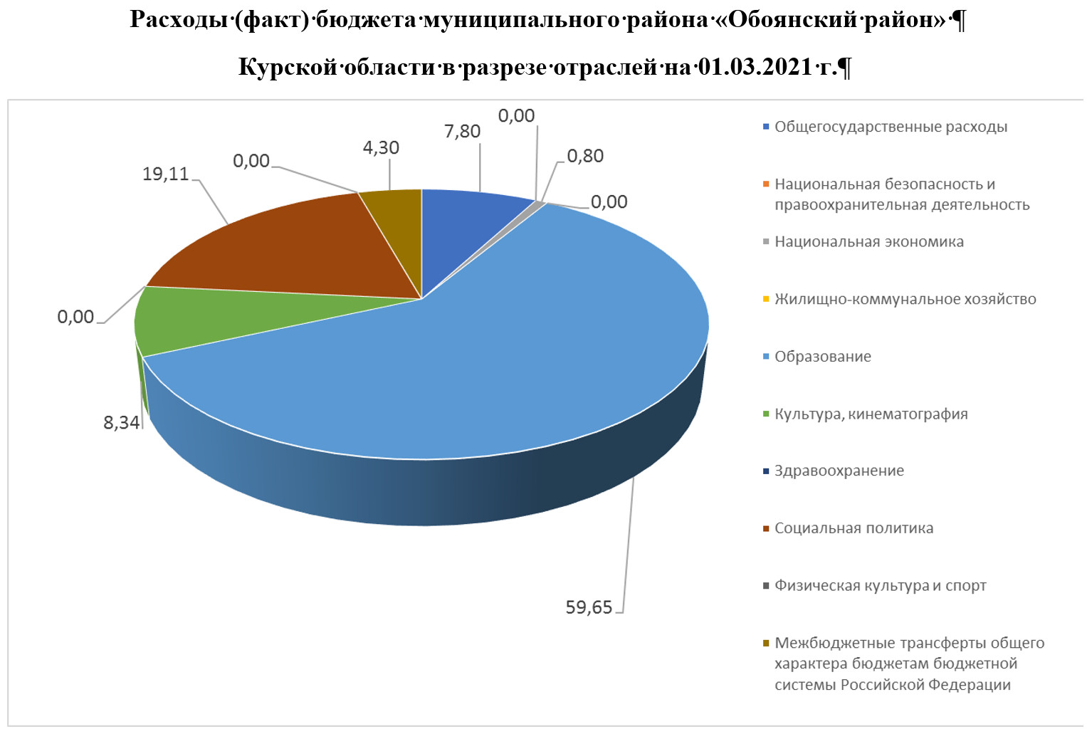 Расходы бюджета муниципального района «Обоянский район» Курской области в разрезе отраслей на 01.03.2021 г.